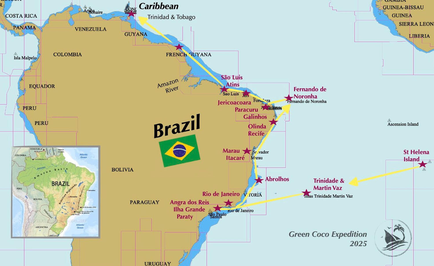 Rio de Janeiro via Abrolhos to Peninsula de MaraĂş. 21 days.