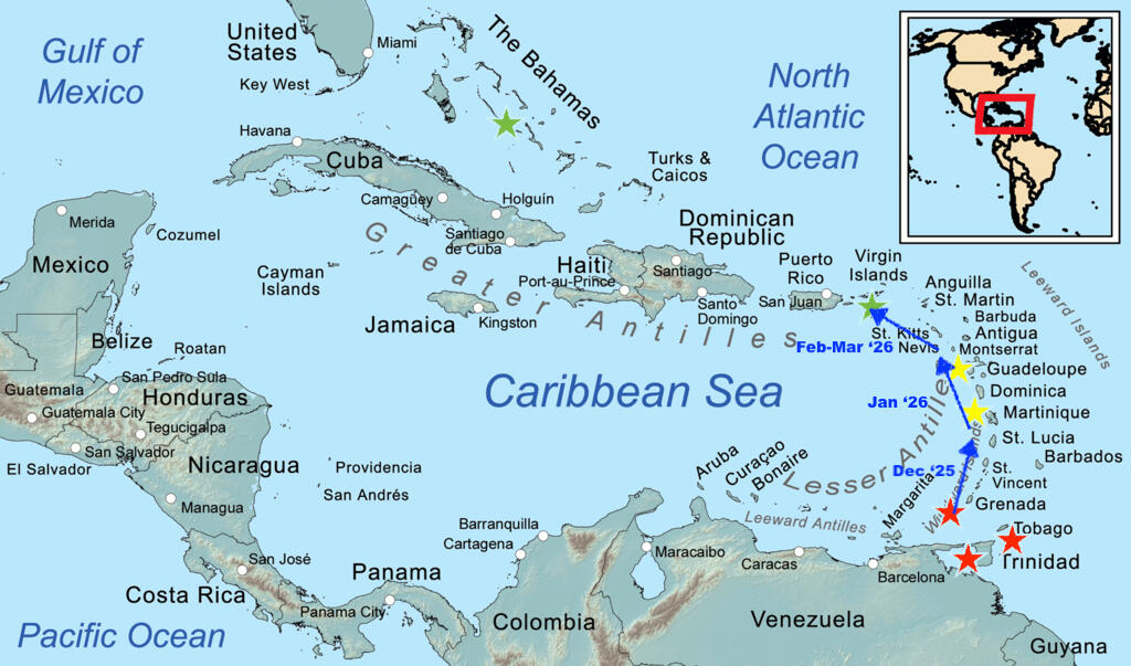 FULL TRIP. Grenada to St. Vincent. 12 days.